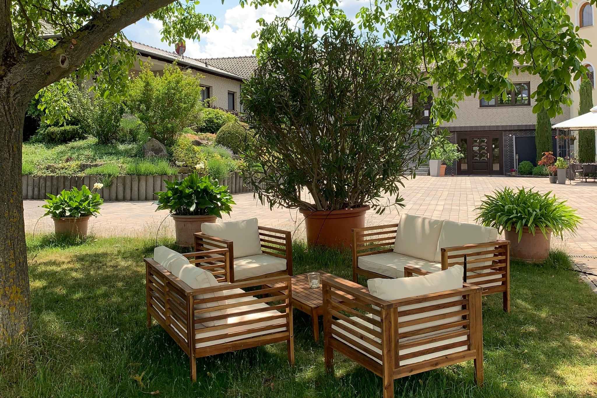 Unser großer Innenhof und die angrenzende Wiese bieten vor allem im Sommer ideale Möglichkeiten, um Arbeitsphasen nach draußen zu verlegen. Ob Gruppenarbeiten, kreative Übungen oder kurze Pausen an der frischen Luft - das Arbeiten im Grünen sorgt für neue Perspektiven und bringt frische Energie in Ihre Veranstaltung.